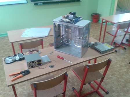 Cel wykonania laboratorium - zapoznanie się z podstawowymi podzespołami zestawu komputerowego. Materiały i urządzenia: 1. Obudowa komputera, 2. Płyta główna (kompletna), 3. Zasilacz, 4. Napęd CD-ROM, 5. Napęd FDD, 6. Dysk HDD, 7. Pamięć RAM, 8. Karta dźwiękowa, 9. Karta graficzna, 10. Karta sieciowa. Przebieg wykonywanej pracy: 1. Rozmontowanie komputera na części pierwsze (podzespoły). 2. Składamy i uruchamiamy zestaw komputerowy.